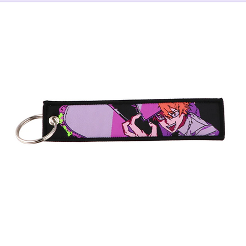 This anime key tag features a boy that made a pact with a devil that embodies the fear of chainsaws.