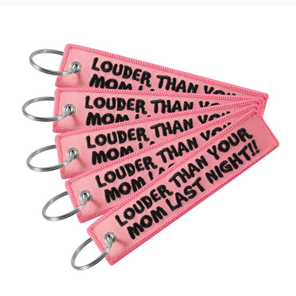 This key tag features the slogan "Louder than your mom last night!!"